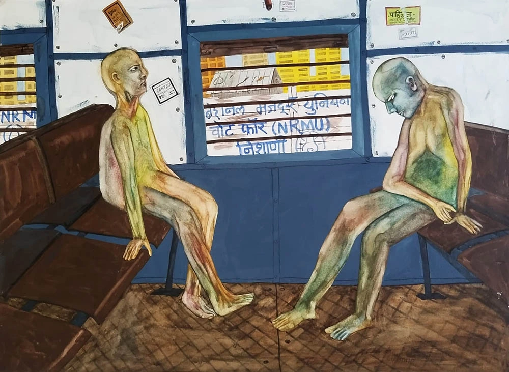 Arun Maruti Peje is a contemporary artist whose practice reflects deeply on the fragile essence of humanity within the framework of urban life. His work critiques the increasingly mechanical and consumption-driven rhythm of modern cities, where genuine emotion is overshadowed by automation and routine. Through paintings such as Happy Journey, Fungus, Headache, and Relaxed City, Arun explores themes of alienation, disposability, and the gradual transformation of human beings into synthetic participants in a system that values function over feeling.