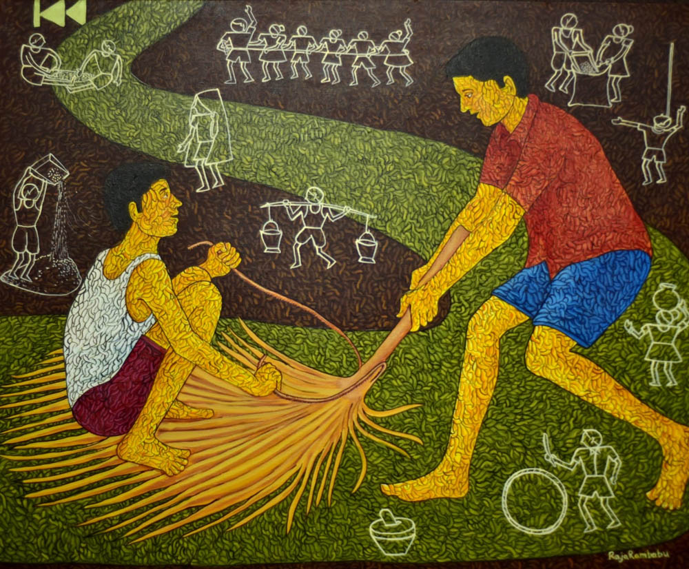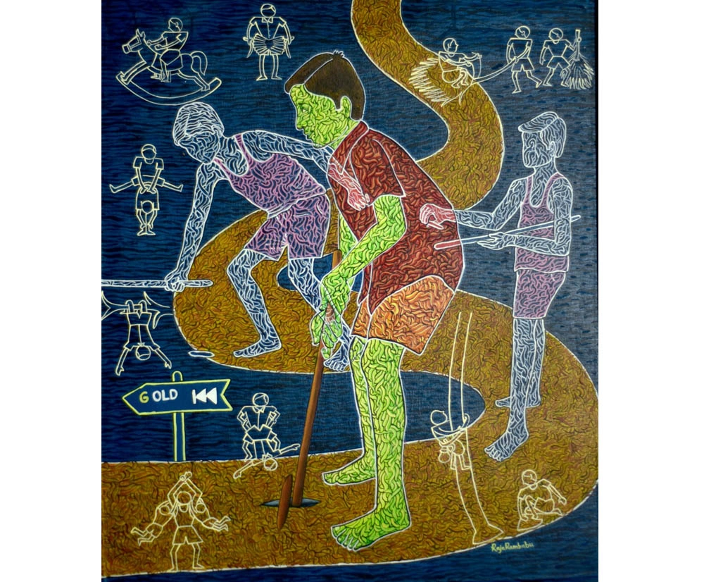 Raja Rambabu is a contemporary artist whose practice reflects a lifelong passion for painting and a deep engagement with memory, philosophy, and abstraction. Formally trained with a B.F.A. from Andhra University and an M.F.A. from Mysore University, he transformed his childhood passion into a professional pursuit.