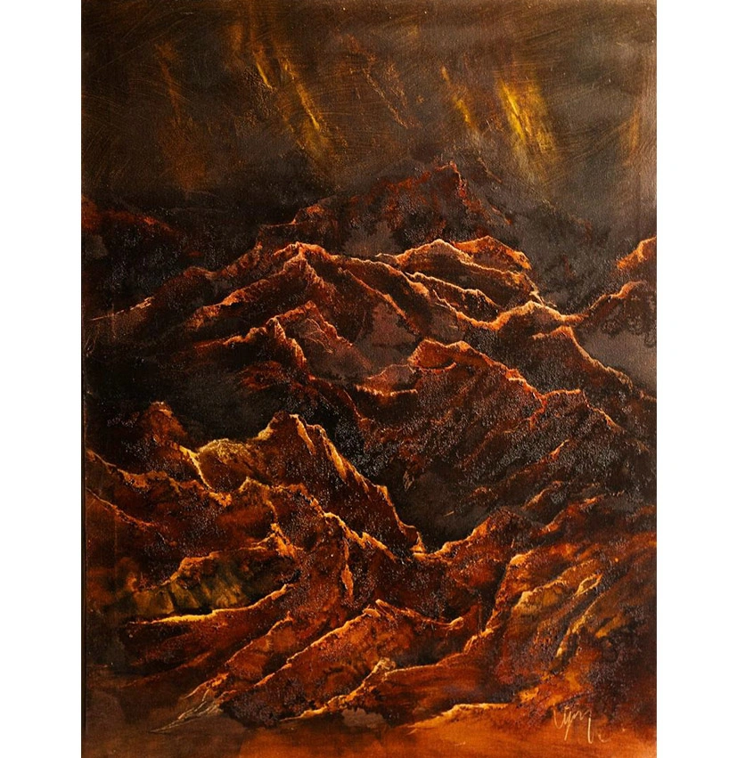 Vijaya Kumar is a self-taught artist whose ardent love for painting has shaped a lifelong journey of exploration and originality. Since 1969, he has developed a unique technique that distinguishes his work, most notably his trademark mountainscapes, which transport viewers into realms of fantasy and reflection. For him, the act of painting is both personal and shared—a journey undertaken by artist and onlooker together.